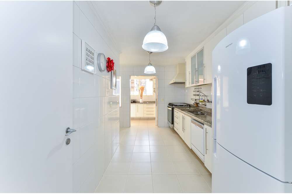 A sala é bastante iluminada não só pela varanda mas também pelas janelas presentes pelo living que integra todos os ambientes, incluindo-se a área da lareira. A cozinha e a área de serviço com dependência e o banheiro de funcionários são muito espaçosos e com excelentes acabamentos.